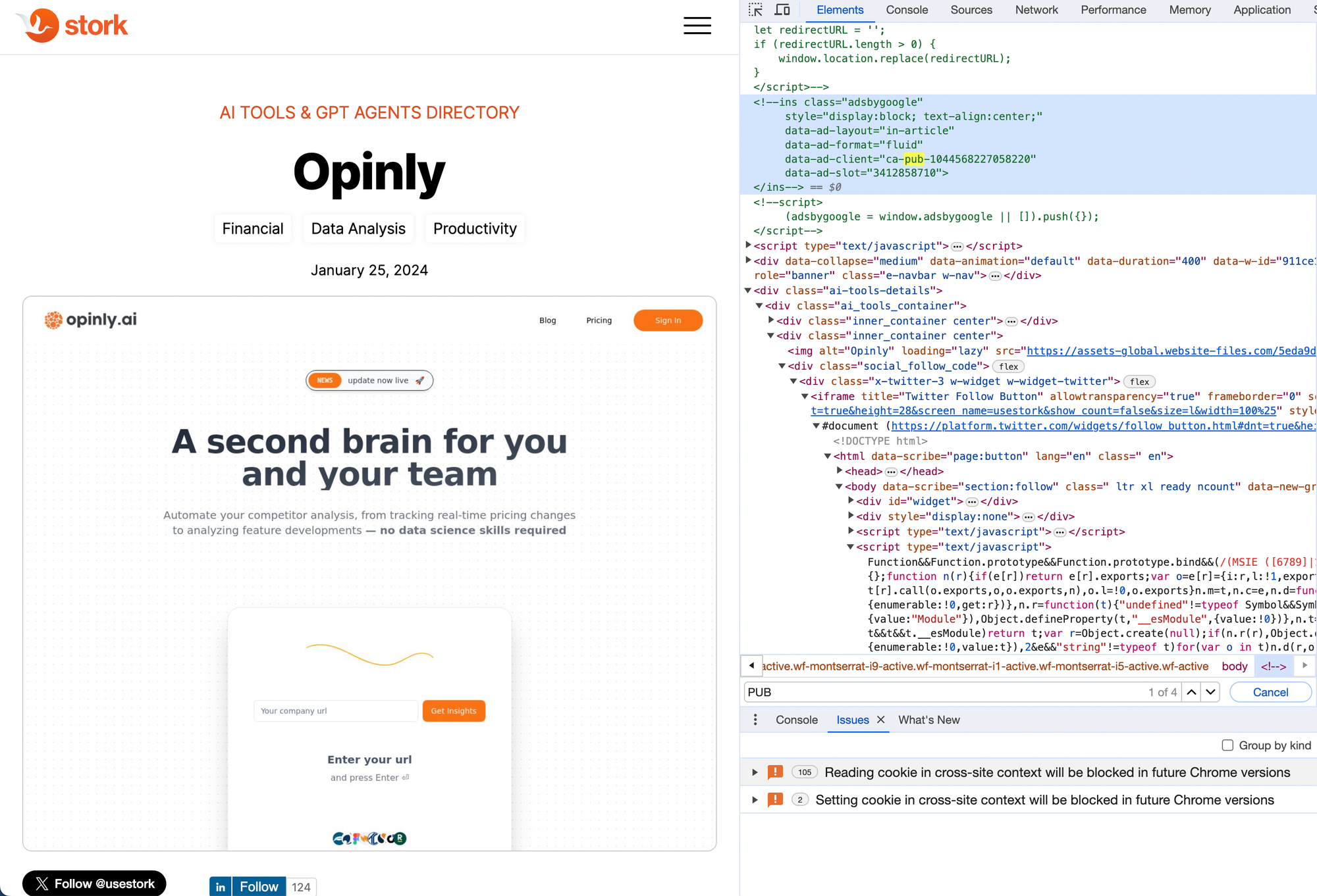 Inspect the site's code using the browser's 'Inspect Element' feature, and locate the Google AdSense PUB ID by pressing 'Cmd' (Mac) or 'Ctrl' (Windows) along with 'F' to open the search function, then type 'pub'. This action unveils the key to exploring the full array of your competitor's online ventures.